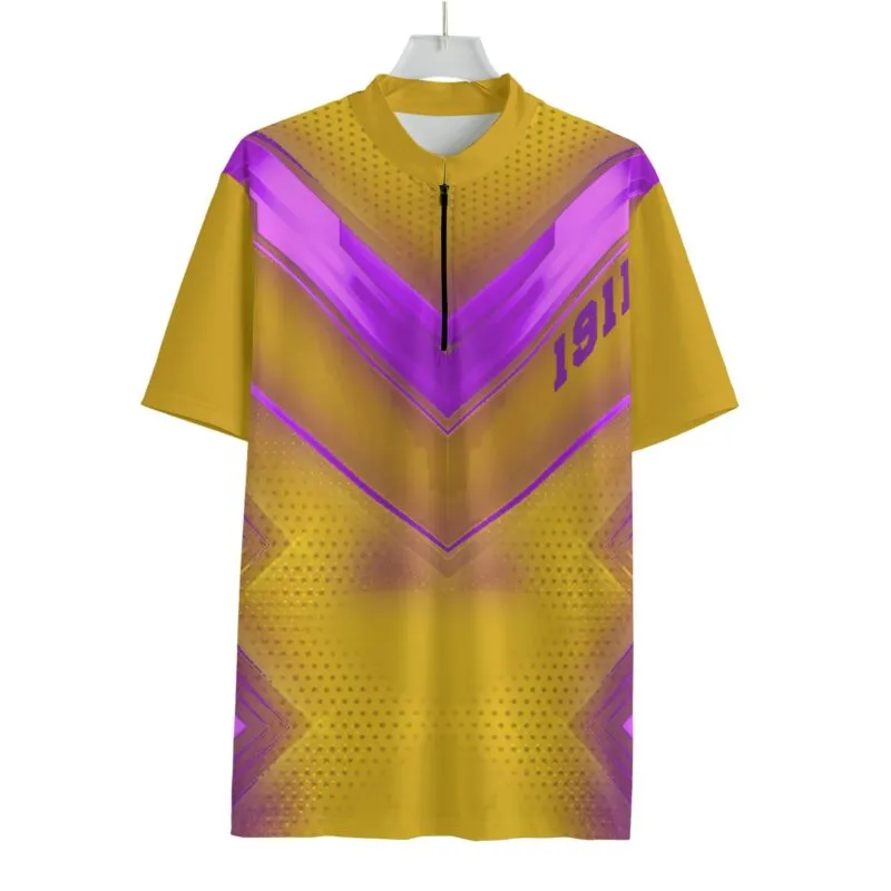 Omega Psi Phi men’s cycling jersey that doubles as a premium omega psi phi polo shirt for active brothers. Features signature purple and gold colorways with moisture-wicking polyester-spandex blend perfect for chapter golf tournaments, weekend rides, or casual campus wear. Represent the Ques with performance style from The D9 Standard.