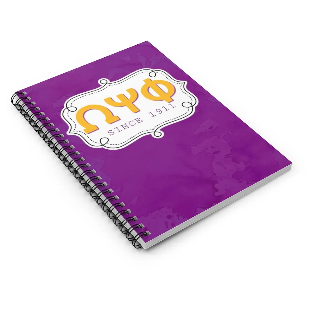 Omega Psi Phi ruled line spiral notebook with 120 pages and durable printed cover in signature purple and gold. Perfect for taking notes at chapter meetings or jotting down ideas on campus, this omega psi phi paraphernalia piece keeps you organized in true Que style. Proudly brought to you by The D9 Standard.