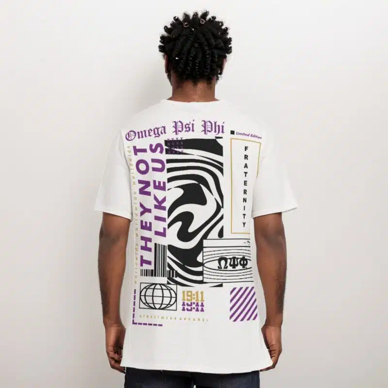 Omega Psi Phi men’s t-shirt featuring bold “They Not Like Us” graphics in signature purple and gold. This premium omega psi phi shirt brings the energy to step shows, tailgates, and chapter events. Whether you’re shopping for yourself or browsing omega psi phi gifts for a fellow Que, The D9 Standard delivers authentic Greek pride.