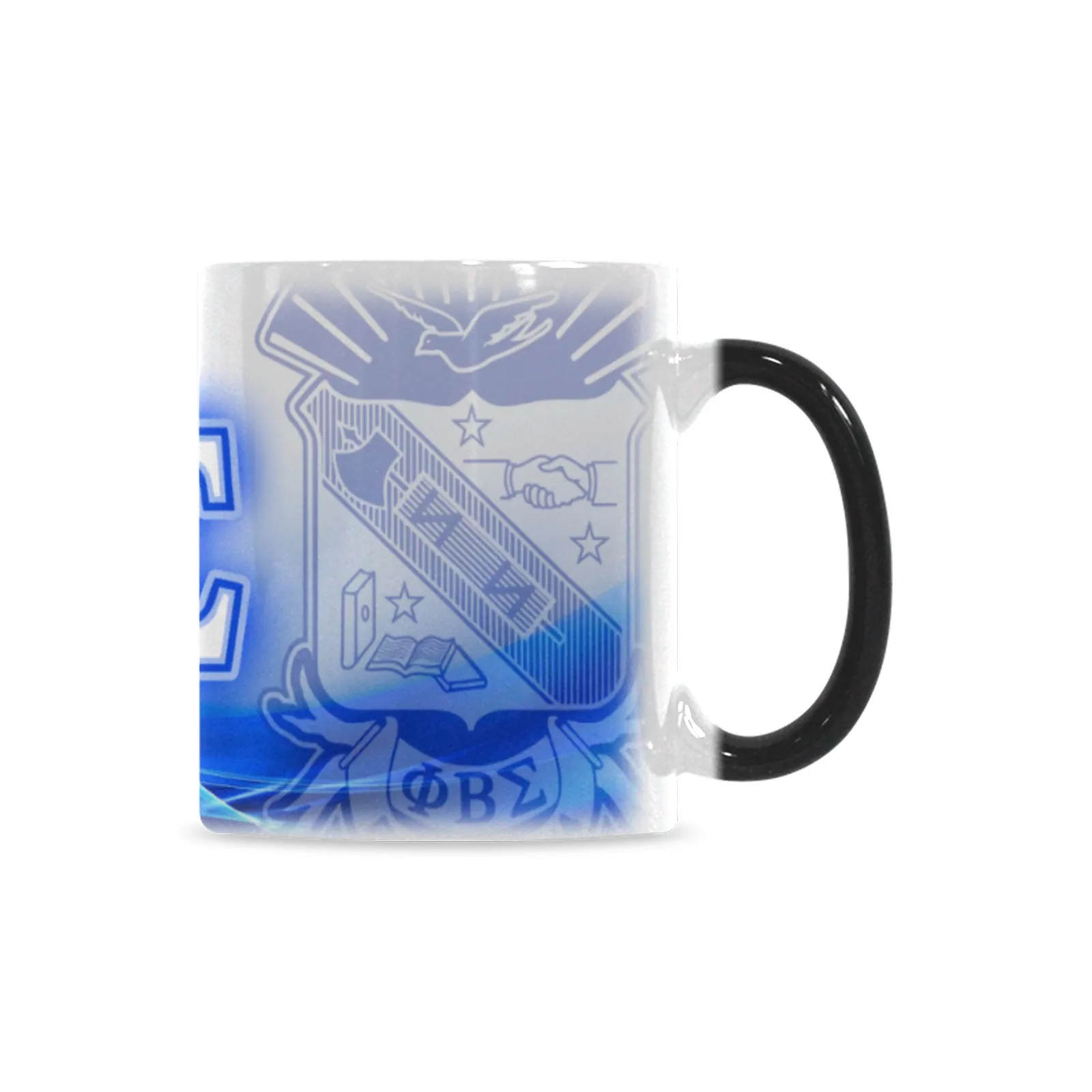 Phi Beta Sigma men’s color-changing mug reveals your fraternity pride with every hot pour. This heat-activated ceramic holds 11oz of your favorite beverage and showcases royal blue and white Sigma paraphernalia that transforms before your eyes—ideal for chapter meetings or daily office use. Premium Phi Beta Sigma merch from The D9 Standard.