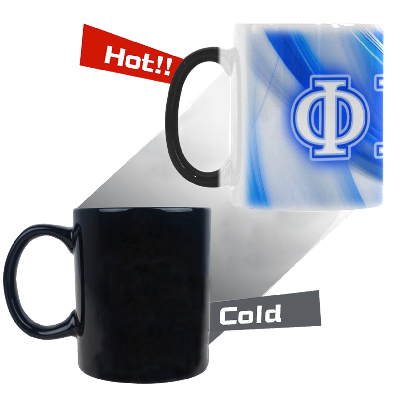 Phi Beta Sigma men’s color-changing mug reveals your fraternity pride with every hot pour. This heat-activated ceramic holds 11oz of your favorite beverage and showcases royal blue and white Sigma paraphernalia that transforms before your eyes—ideal for chapter meetings or daily office use. Premium Phi Beta Sigma merch from The D9 Standard.