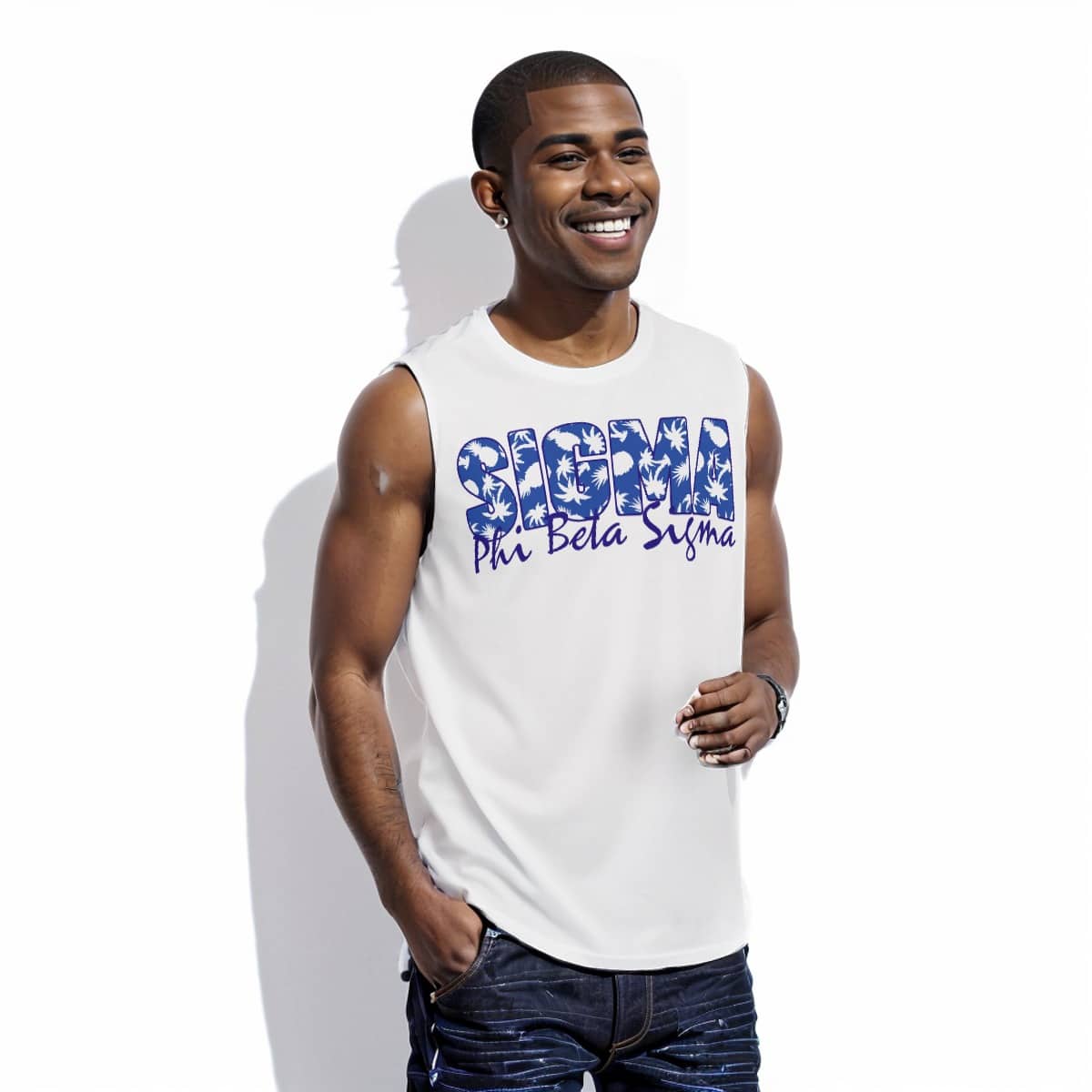 Phi Beta Sigma men’s tank top in signature royal blue and white delivers breathable comfort for step shows, campus life, and summer events. This sleeveless crew neck design stands out among Phi Beta Sigma shirts and paraphernalia with its lightweight polyester construction. Represent the brotherhood with The D9 Standard.