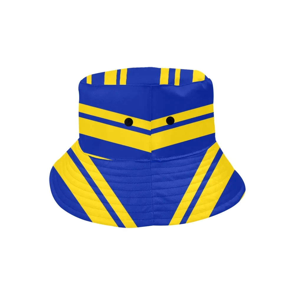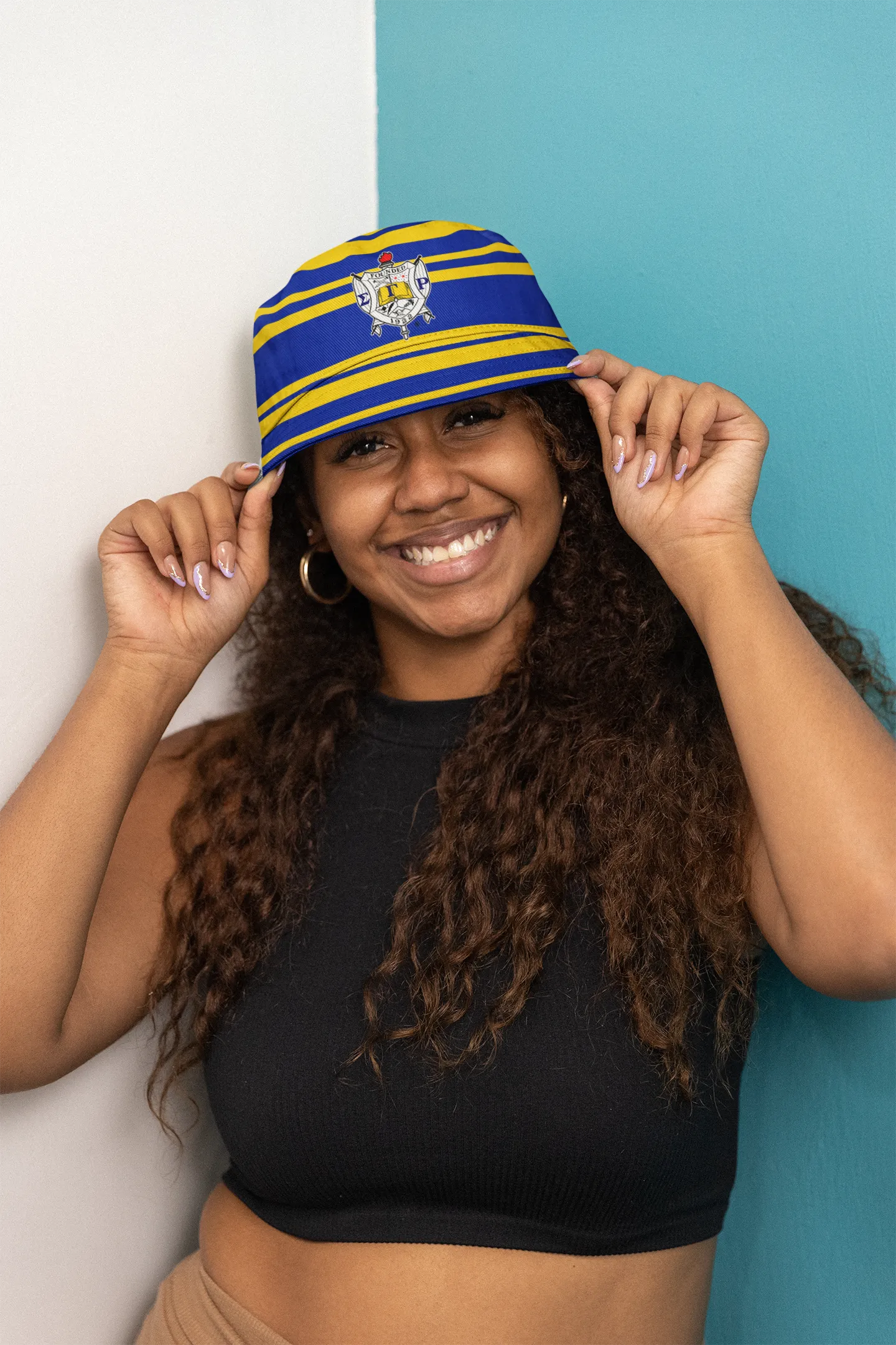 Sigma Gamma Rho bucket hat for women crafted from soft cotton twill in royal blue and gold. This SGRho paraphernalia adds sorority style to campus strolls, chapter events, or weekend cookouts. The D9 Standard brings you quality Greek gear that celebrates your sisterhood.