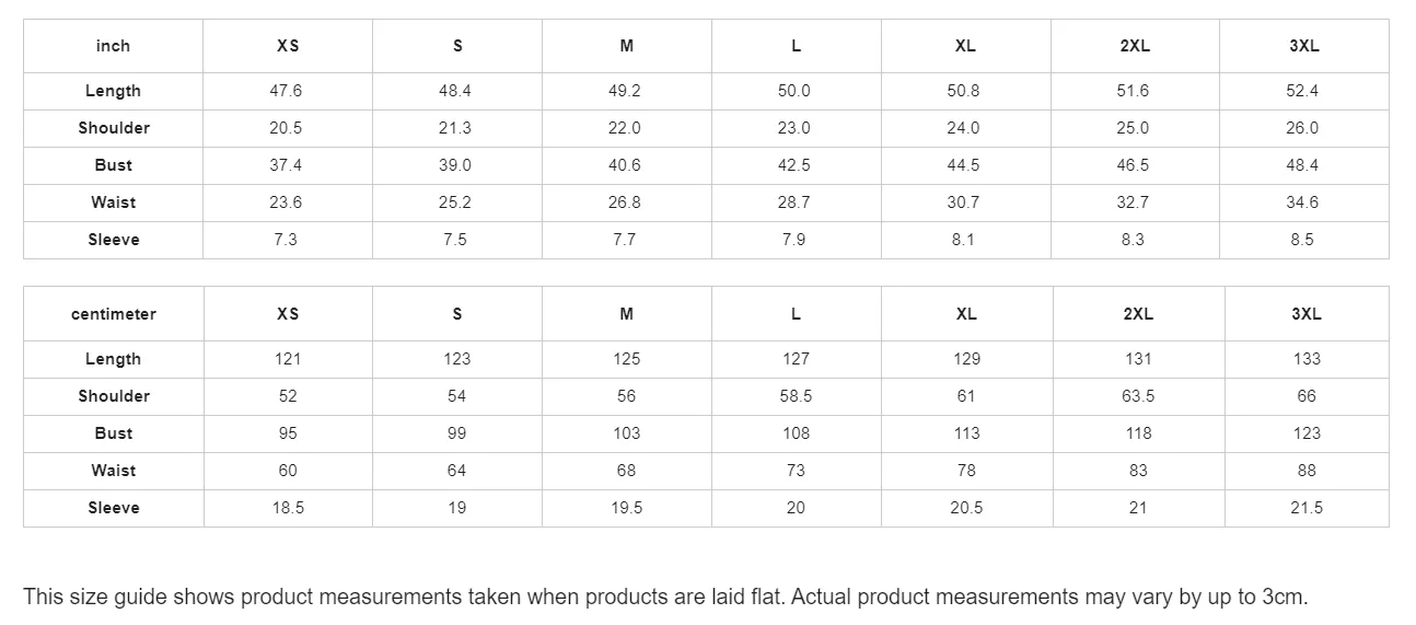 | inch | XS | S | M | L | XL | 2XL | 3XL |