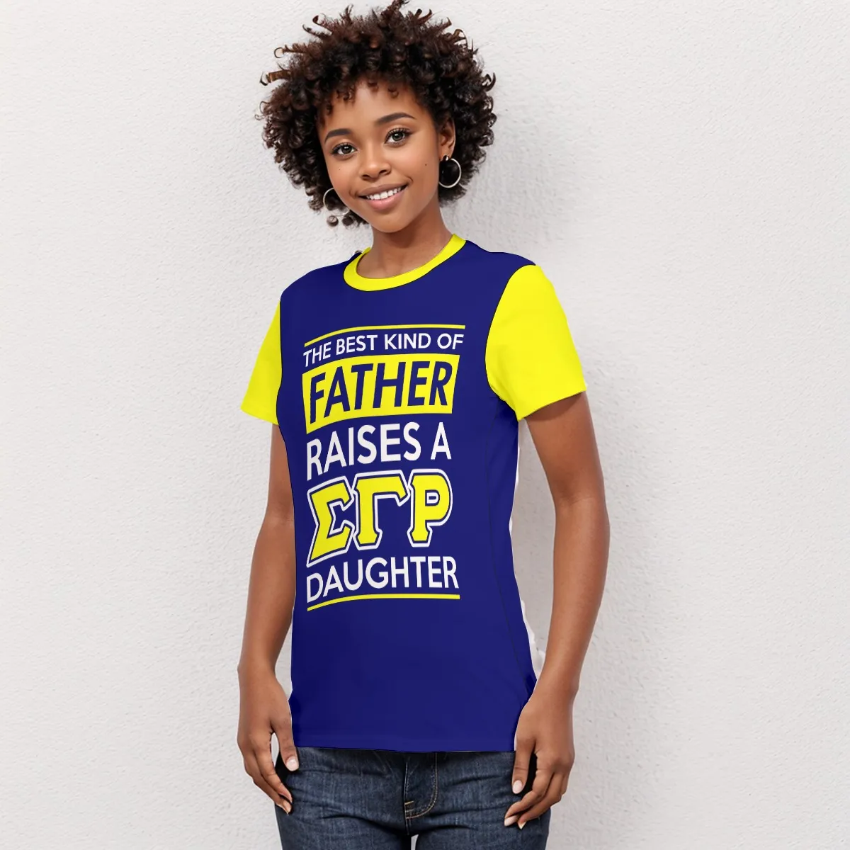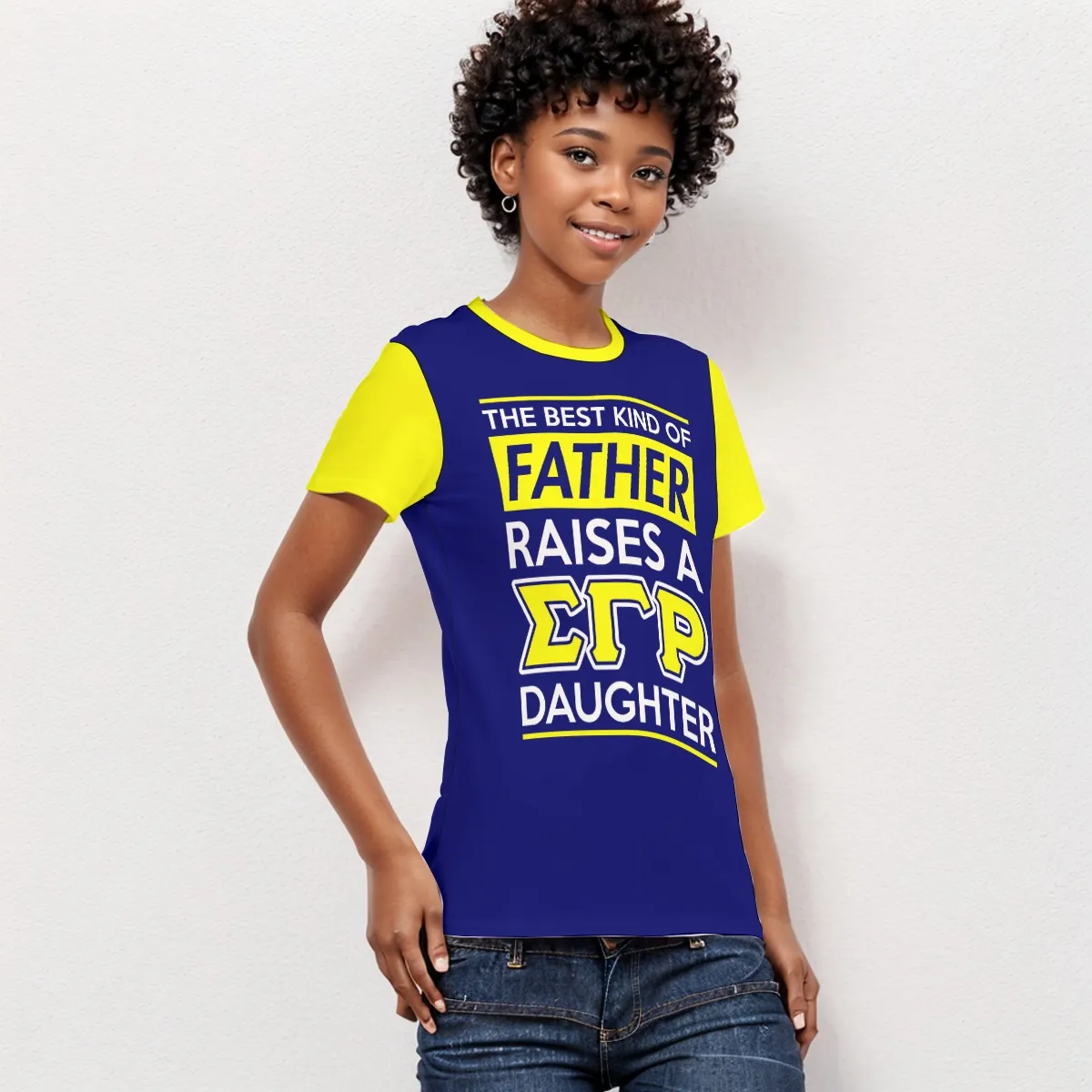 Sigma Gamma Rho women’s tee celebrating the fathers who raised phenomenal Poodles. This sigma gamma rho shirt features royal blue and gold accents, making it ideal sgrho paraphernalia for family day,父親 appreciation events, or casual campus wear. Premium cotton comfort meets Divine Nine pride from The D9 Standard.