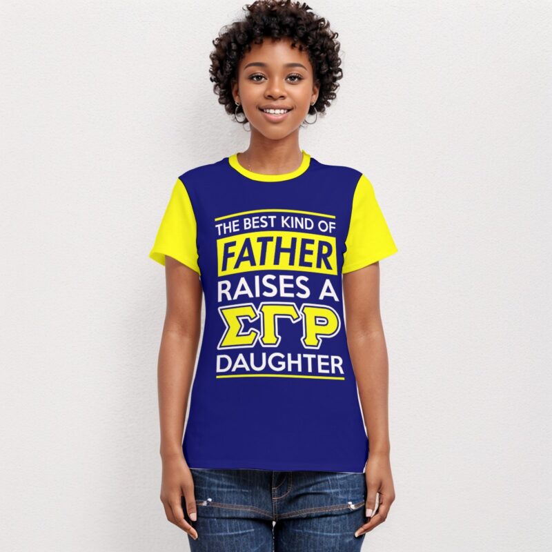 Sigma Gamma Rho women’s tee celebrating the fathers who raised phenomenal Poodles. This sigma gamma rho shirt features royal blue and gold accents, making it ideal sgrho paraphernalia for family day,父親 appreciation events, or casual campus wear. Premium cotton comfort meets Divine Nine pride from The D9 Standard.