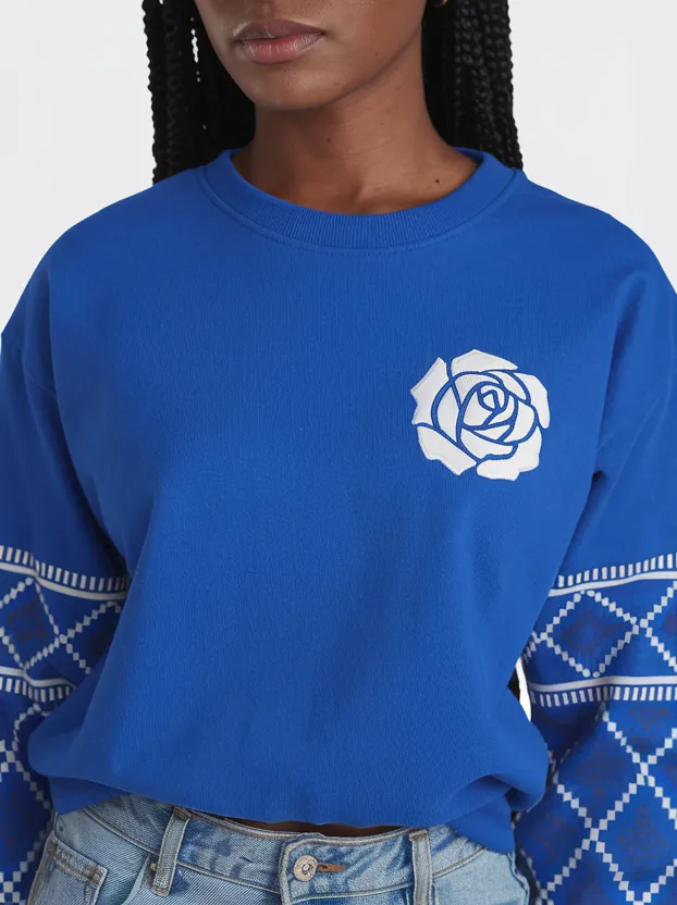 Zeta Phi Beta women’s crewneck sweater featuring elegant white rose harmony design in royal blue and white. This premium zeta phi beta hoodie style is ideal for step shows, chapter meetings, and sisterhood events. Elevate your zeta phi beta paraphernalia collection with The D9 Standard.