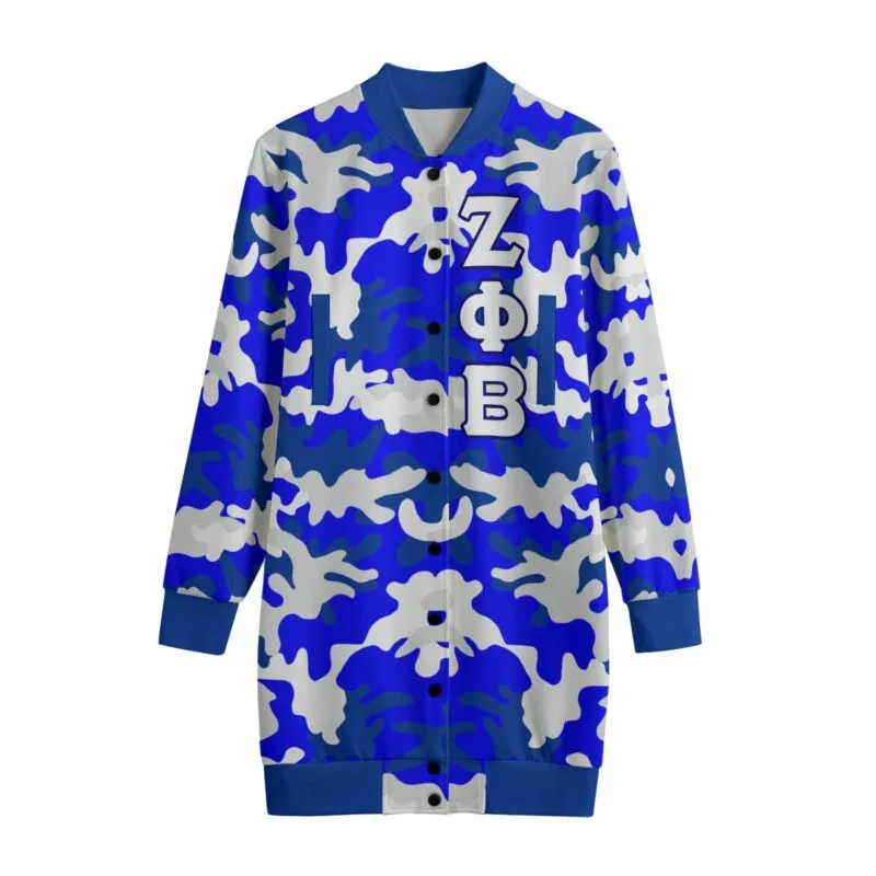 This Zeta Phi Beta women’s long jersey combines comfort and style in the sorority’s signature royal blue and white. The polyester-spandex blend keeps you warm at step shows and campus events while side pockets add functionality. Essential zeta phi beta paraphernalia from The D9 Standard.