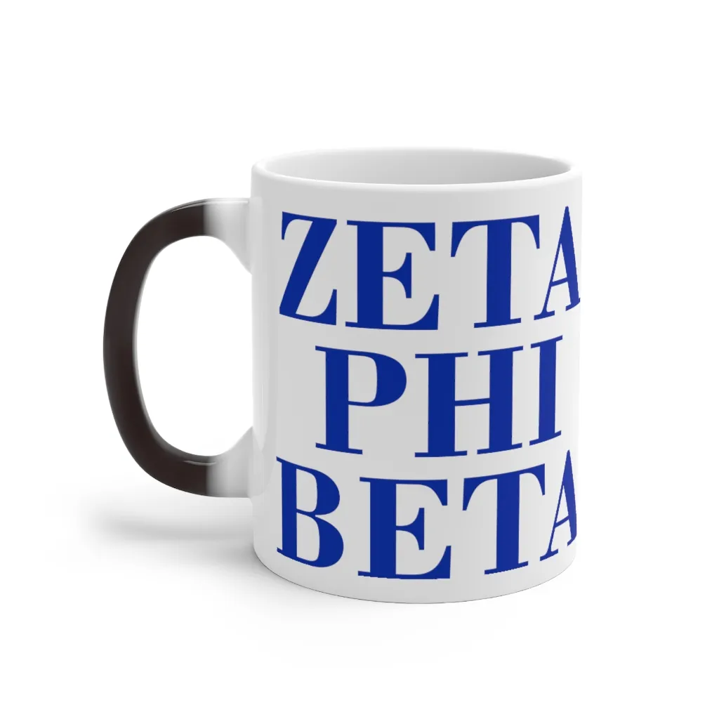 This Zeta Phi Beta color changing mug transforms with heat to reveal royal blue and white in stunning fashion. An unexpected addition to your zeta phi beta paraphernalia collection that makes mornings more fun and doubles as a conversation starter for probate gifts. Exclusively at The D9 Standard.
