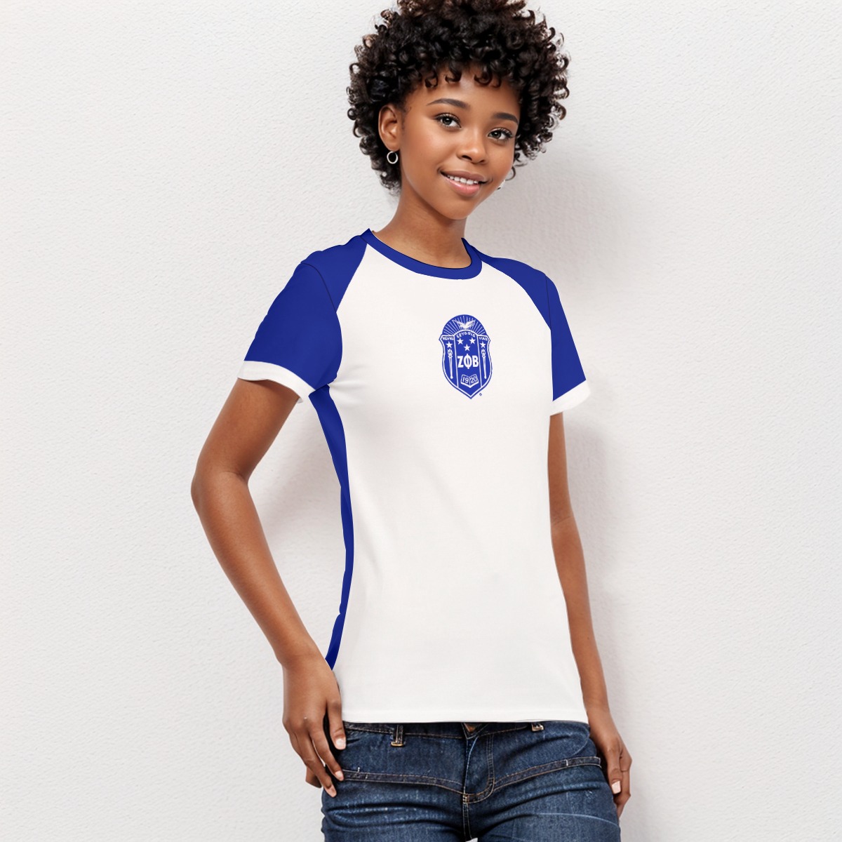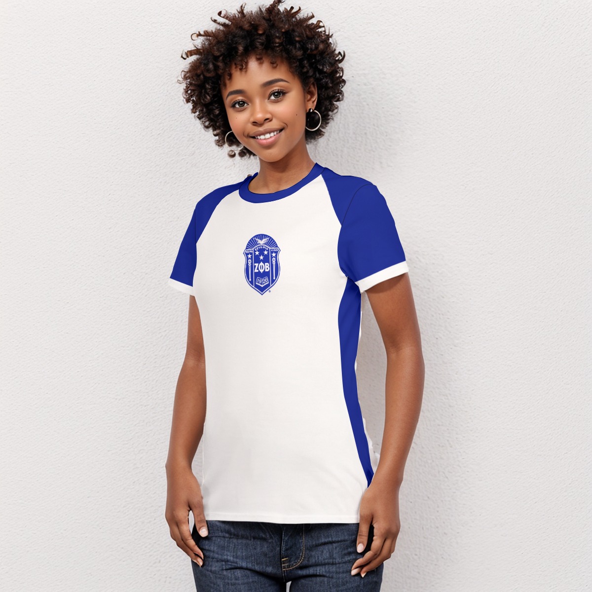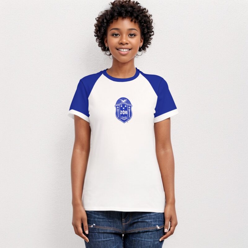 This Zeta Phi Beta women’s shirt features an all-over emblem print in royal blue and white on breathable cotton. Whether you’re searching for meaningful zeta phi beta paraphernalia or zeta phi beta probate gifts, this tee delivers bold Zeta pride for chapter meetings and campus life. The D9 Standard.