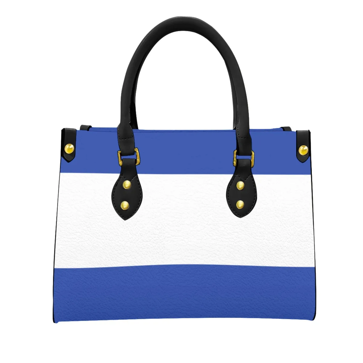 Zeta Phi Beta tote bag featuring royal blue and white colorway with a sleek black handle. This spacious accessory holds everything you need for chapter meetings, campus events, or daily errands, making it ideal zeta phi beta paraphernalia and among the most practical zeta phi beta probate gifts. From The D9 Standard.