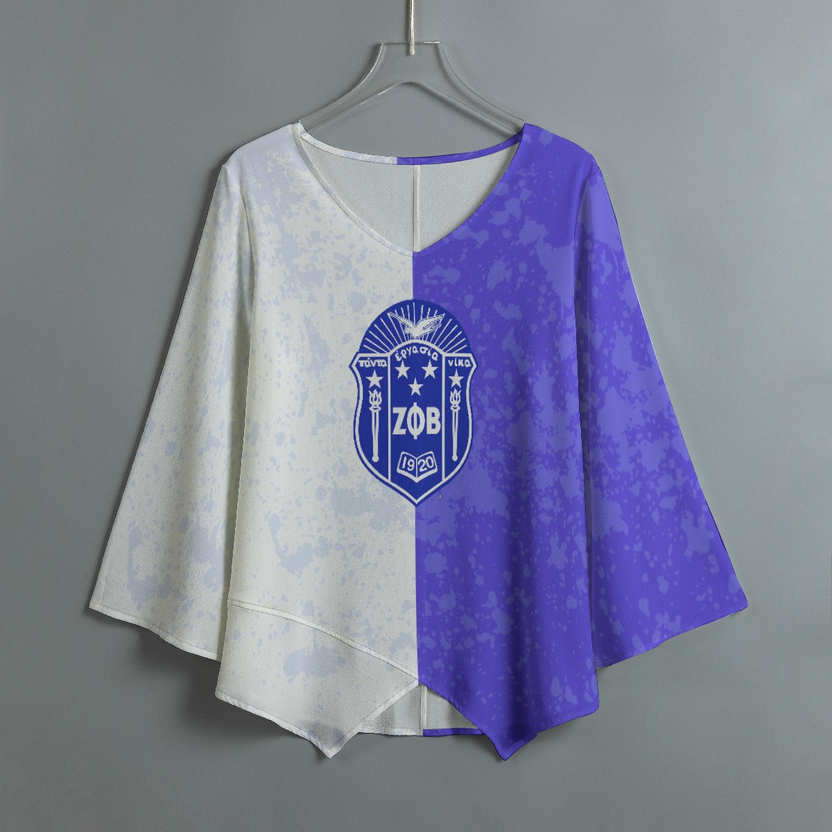 This Zeta Phi Beta women’s v-neck shirt features an eye-catching irregular hem design in the sorority’s iconic royal blue and white. The lightweight polyester fabric makes it ideal zeta phi beta paraphernalia for step shows, campus events, or casual wear. Represent your sisterhood in style with The D9 Standard.