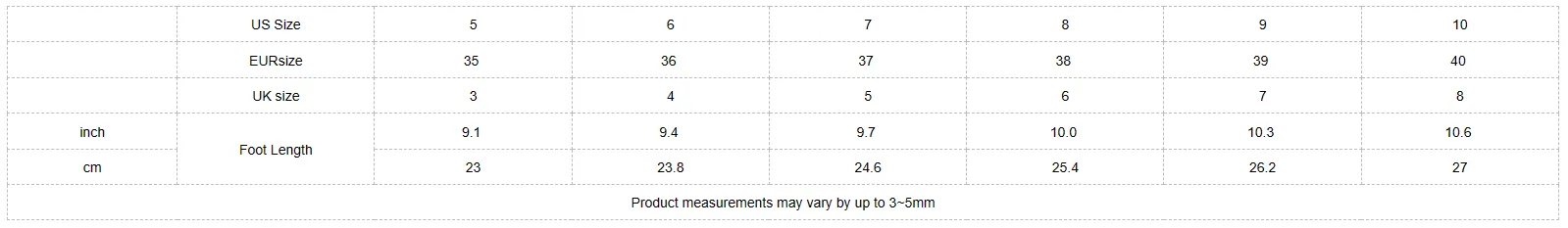 US Size 5 6 7 8 9 10