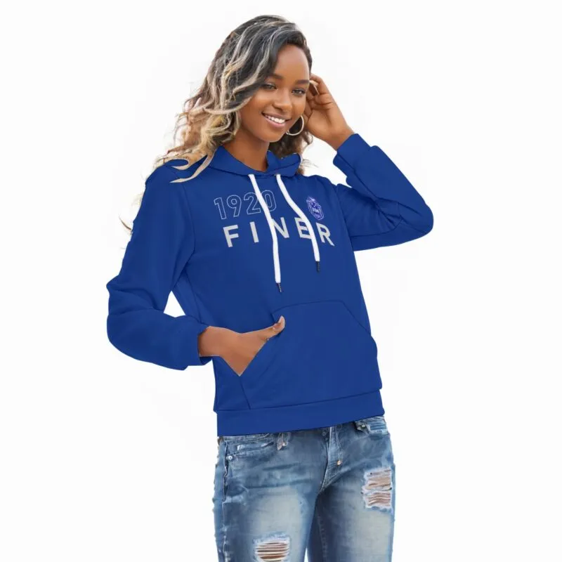 Zeta Phi Beta women’s hoodie featuring a sleek year outline design in the sorority’s signature royal blue and white. This slim-fit pullover works perfectly for chapter meetings, campus wear, or relaxed weekends. Quality Zeta Phi Beta paraphernalia from The D9 Standard.